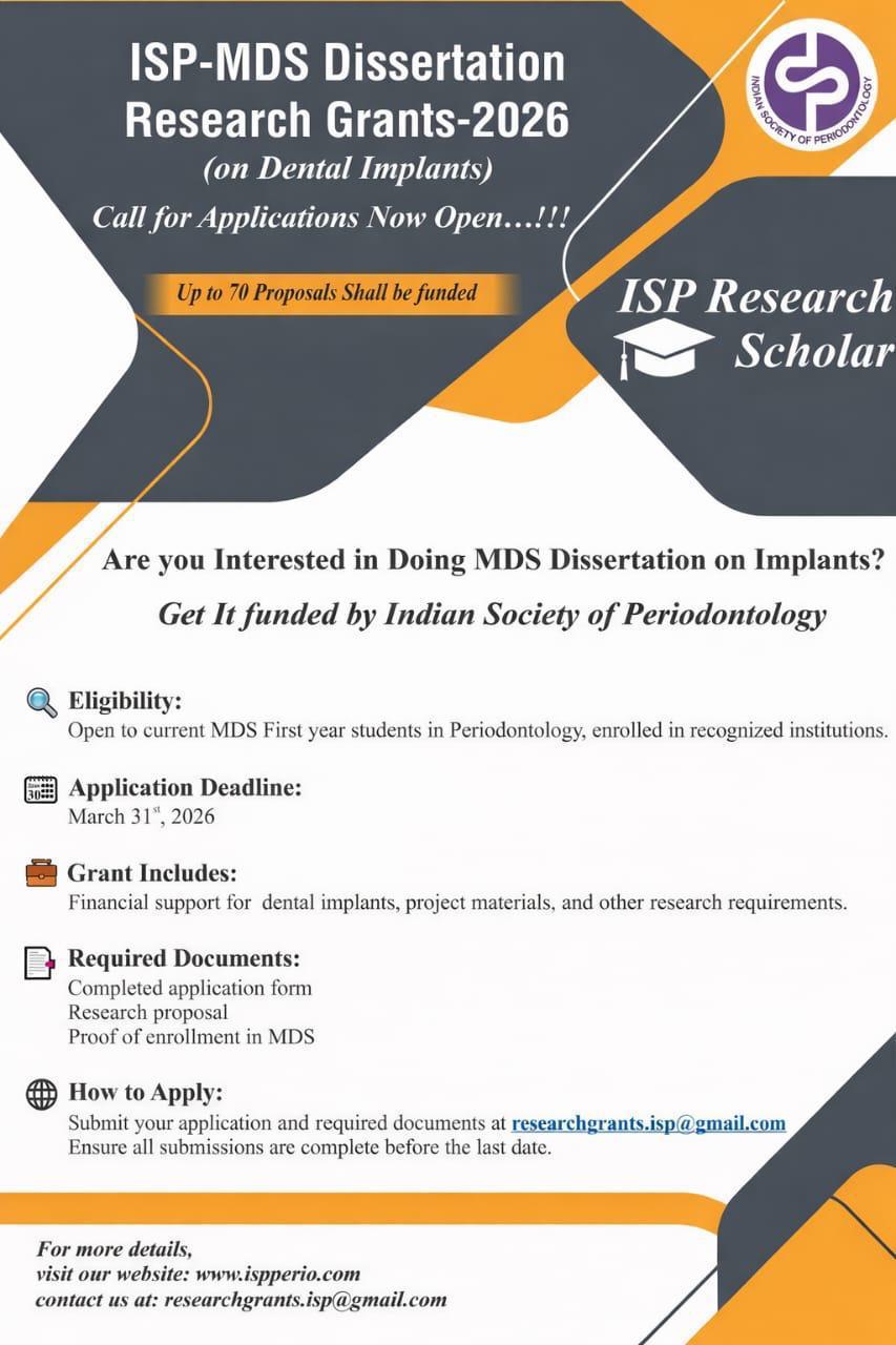 For celebrating our Golden Jubilee the society has envisaged a number of programs for all it's stakeholders covering well- nigh the entire gamut of periodontology. Our dynamic website will keep you updated real - time.